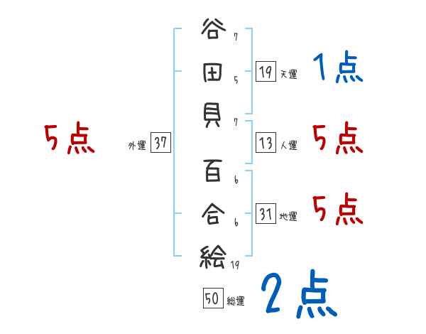 谷田貝百合絵さんの画数の鑑定結果