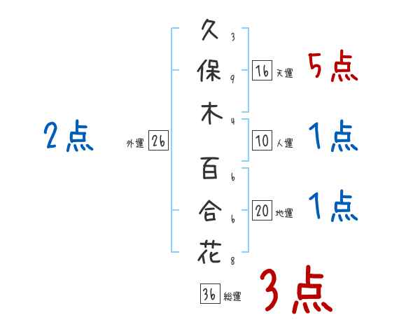 外運![]() | 久保木百合花さんの外運は26画の2つ星!波瀾万丈かも。信頼できる人を大事にしましょう。 生活面を象徴する運勢です。外部から受ける影響力を表し、結婚運、家庭運や職場、環境への順応性を表します。 |