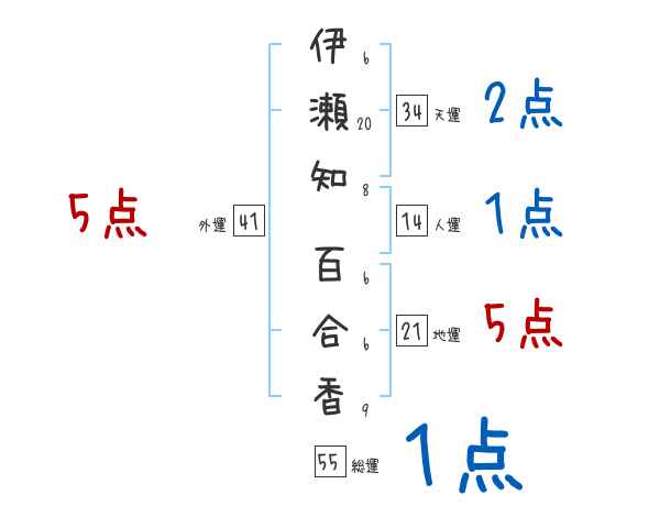 外運![]() | 伊瀬知百合香さんの外運は41画の5つ星!大志を抱き、目標に向かって実力を発揮し達成する。温和な性格。 生活面を象徴する運勢です。外部から受ける影響力を表し、結婚運、家庭運や職場、環境への順応性を表します。 |