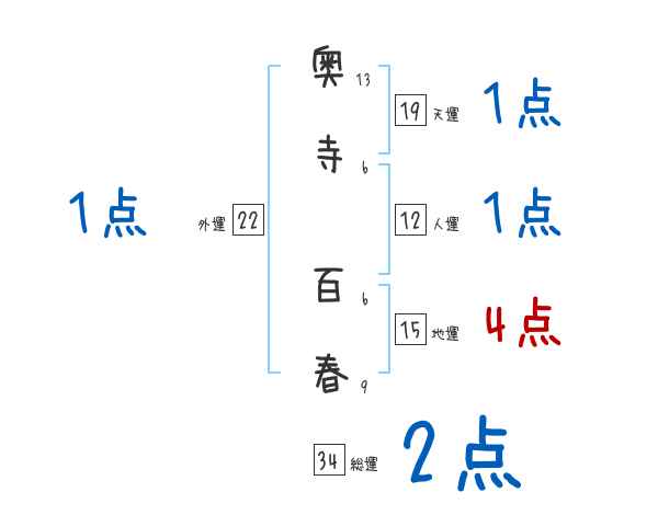 奥寺百春さんの画数の鑑定結果
