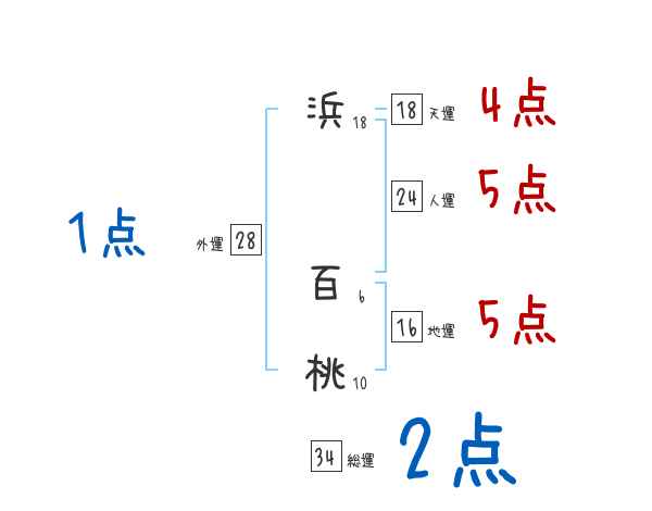 天運![]() | 浜百桃さんの天運は18画の4つ星!情熱的で剛気。忍耐力があり信頼される。 家系が持つ宿命的な運勢を表します。祖先から受け継いだ苗字ですので自分の力が及びません。家柄を象徴します。 |