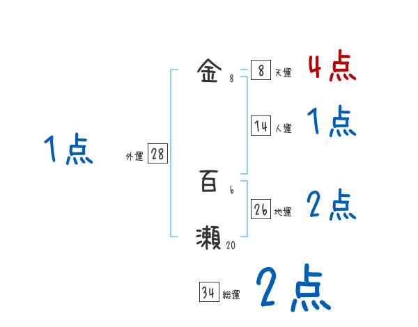 金百瀬さんの画数の鑑定結果