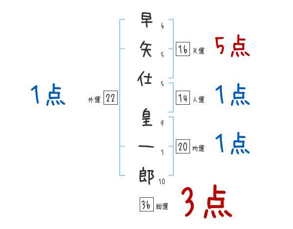 早矢仕皇一郎さんの画数の鑑定結果