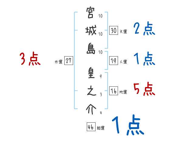 宮城島皇之介さんの画数の鑑定結果
