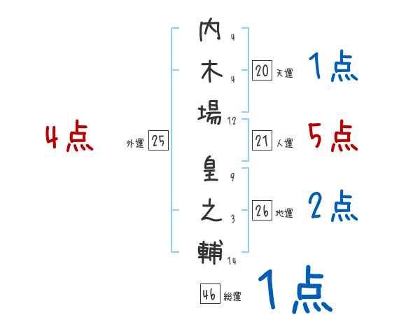 人運![]() | 内木場皇之輔さんの人運は21画の5つ星!統率力がある。独立し成功する。名誉を手に入れる。 性格や才能などを表す2番目に重要な運勢です。人間関係や協調性、社会的な成功に影響します。主に20歳から50歳ぐらいまでの中年期の運勢を表します。 |