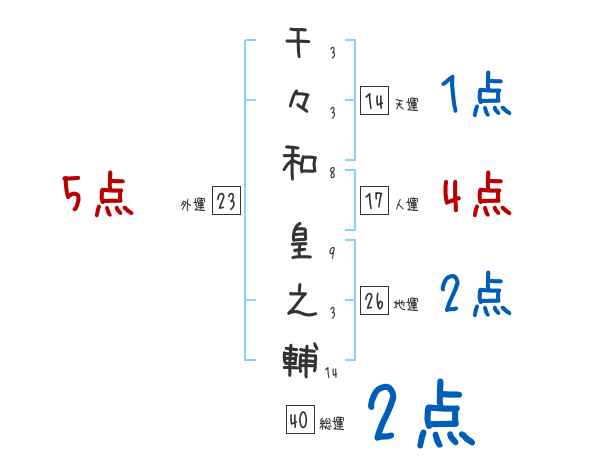 天運![]() | 千々和皇之輔さんの天運は14画の1つ星!人に対して優しいがストレスを溜め込みがち。人間関係のトラブルを避けるよう気をつけましょう。 家系が持つ宿命的な運勢を表します。祖先から受け継いだ苗字ですので自分の力が及びません。家柄を象徴します。 |
