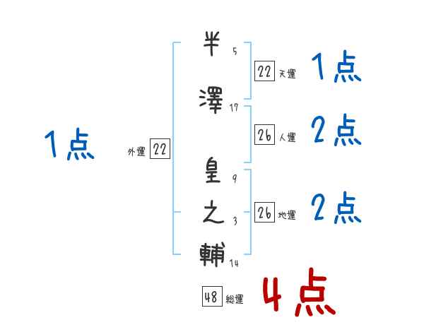 外運![]() | 半澤皇之輔さんの外運は22画の1つ星!努力することが苦手ないっぽう手先が器用。芸術性にも優れる。 生活面を象徴する運勢です。外部から受ける影響力を表し、結婚運、家庭運や職場、環境への順応性を表します。 |