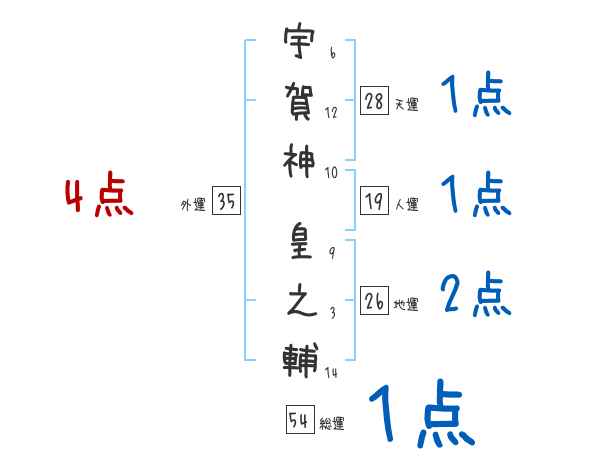 宇賀神皇之輔さんの画数の鑑定結果