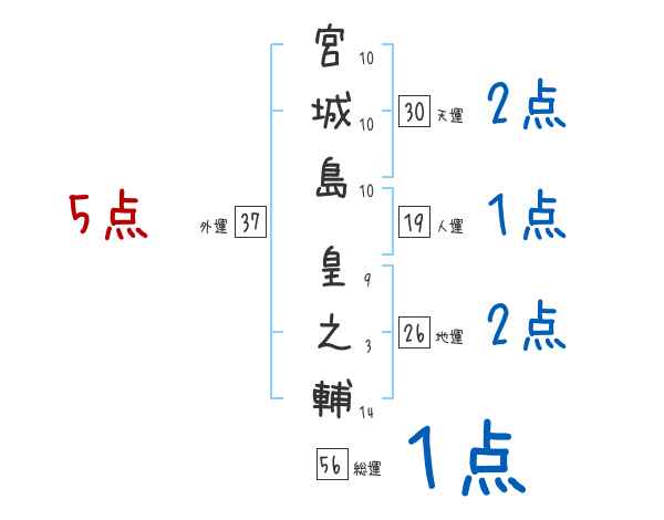 宮城島皇之輔さんの画数の鑑定結果