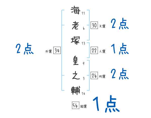 海老塚皇之輔さんの画数の鑑定結果