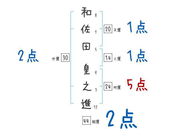 和佐田皇之進さんの画数の鑑定結果