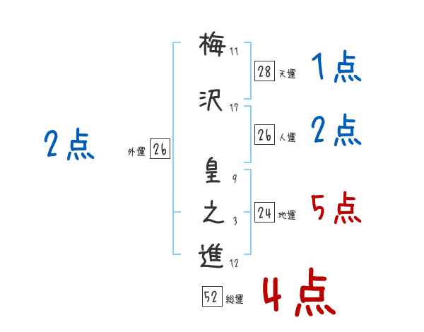 梅沢皇之進さんの画数の鑑定結果