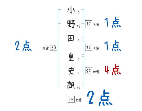 総運![]() | 小野田皇史朗さんの総運は44画の2つ星!誠実で慎重な性格。物事を考えすぎないように注意しましょう。 あなたの人生を表す1番重要な運勢です。生涯を通じて影響する総合運となり、主に50歳以降の晩年期に影響を及ぼします。 |