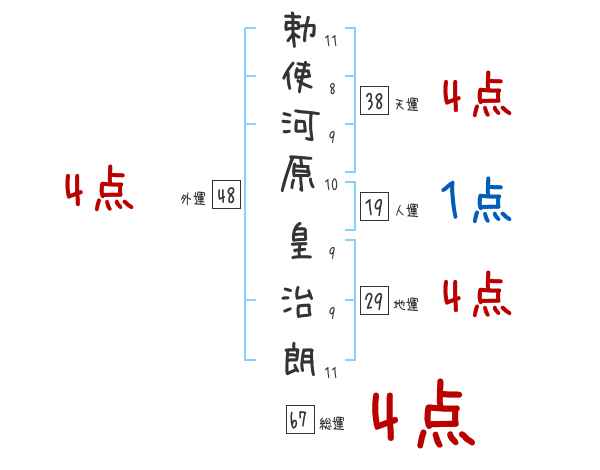 勅使河原皇治朗さんの画数の鑑定結果
