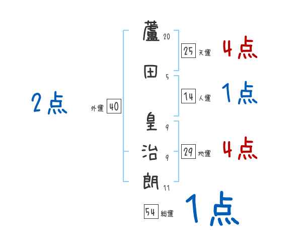 蘆田皇治朗さんの画数の鑑定結果