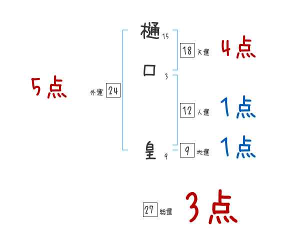 樋口皇さんの画数の鑑定結果