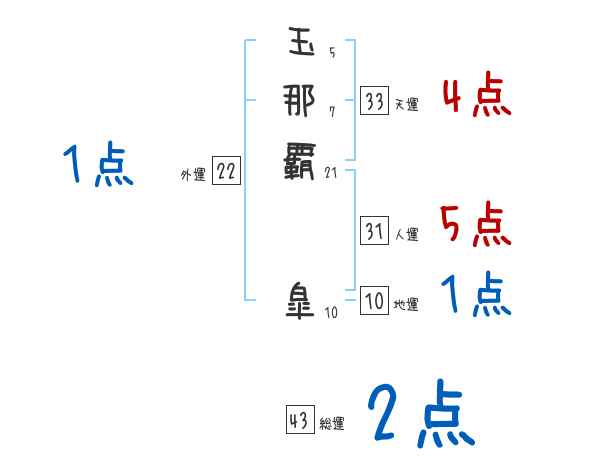 玉那覇皐さんの画数の鑑定結果