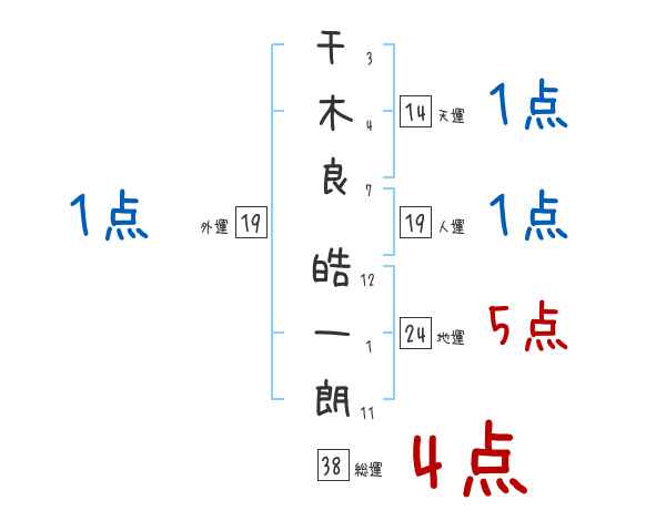 総運![]() | 千木良皓一朗さんの総運は38画の4つ星!温厚な性格で技術的な才能を発揮する。職人的な仕事に向いている。 あなたの人生を表す1番重要な運勢です。生涯を通じて影響する総合運となり、主に50歳以降の晩年期に影響を及ぼします。 |