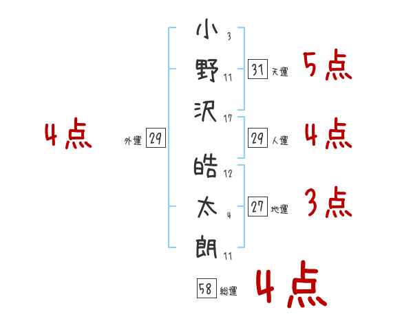 小野沢皓太朗さんの画数の鑑定結果