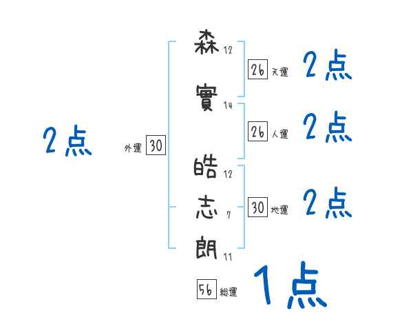 総運![]() | 森實皓志朗さんの総運は56画の1つ星!消極的で無気力になりがち。誠実な気持ちが必要でしょう。 あなたの人生を表す1番重要な運勢です。生涯を通じて影響する総合運となり、主に50歳以降の晩年期に影響を及ぼします。 |