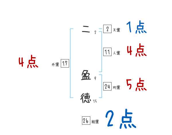 二盈徳さんの画数の鑑定結果
