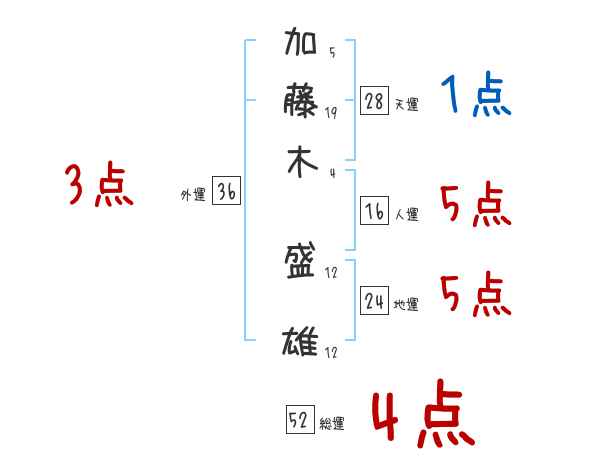加藤木盛雄さんの画数の鑑定結果