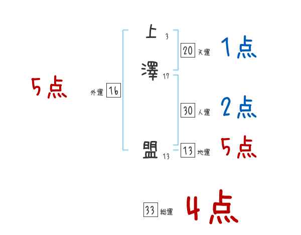 上澤盟さんの画数の鑑定結果