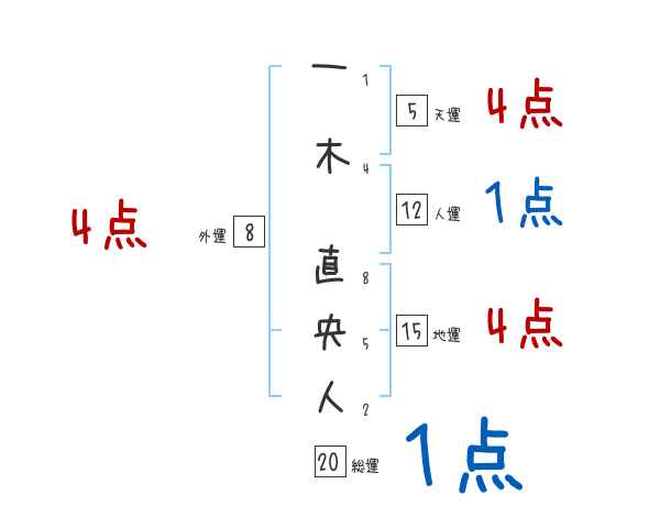 一木直央人さんの画数の鑑定結果
