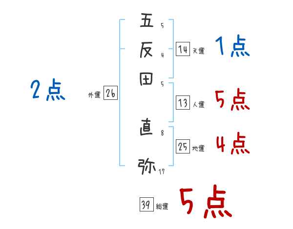 総運![]() | 五反田直弥さんの総運は39画の5つ星!社交性に優れ人望が厚い。人の上に立ち成功する。 あなたの人生を表す1番重要な運勢です。生涯を通じて影響する総合運となり、主に50歳以降の晩年期に影響を及ぼします。 |