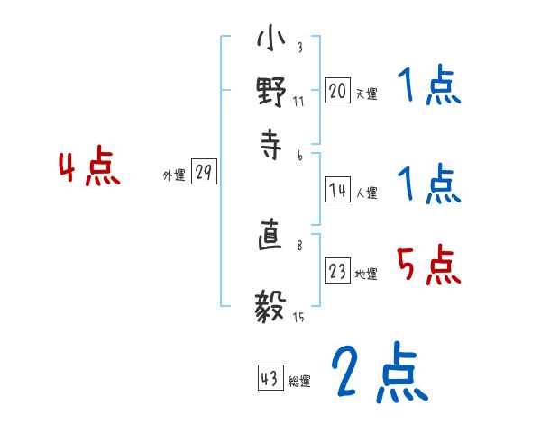 小野寺直毅さんの画数の鑑定結果