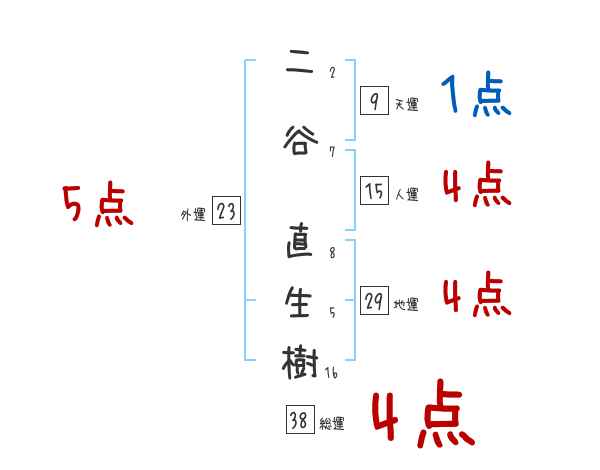 二谷直生樹さんの画数の鑑定結果