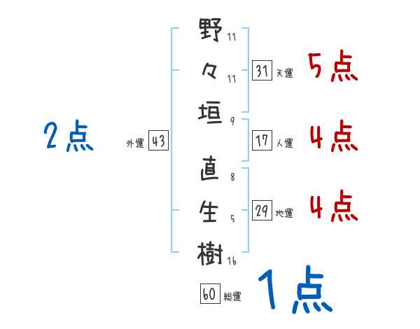 野々垣直生樹さんの画数の鑑定結果