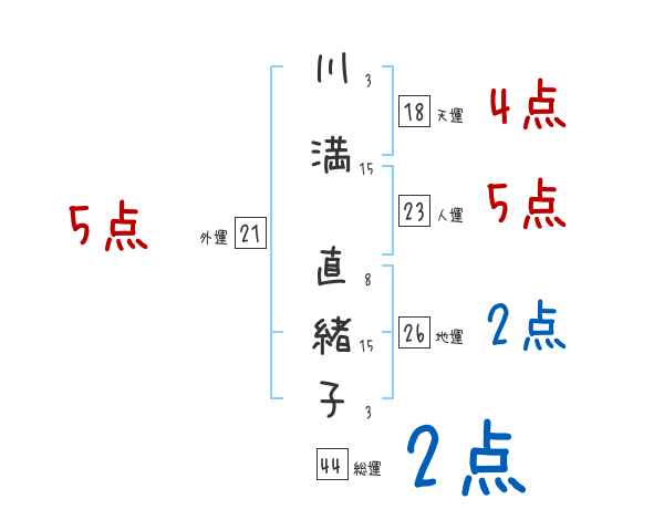 川満直緒子さんの画数の鑑定結果
