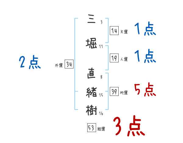 地運![]() | 三堀直緒樹さんの地運は39画の5つ星!社交性に優れ人望が厚い。人の上に立ち成功する。 個性を表す基礎的な運勢です。性格形成や対人関係、行動力など家庭環境に影響されます。主に誕生してから20歳くらいまでの若年期の運勢を表します。 |