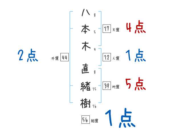 八本木直緒樹さんの画数の鑑定結果