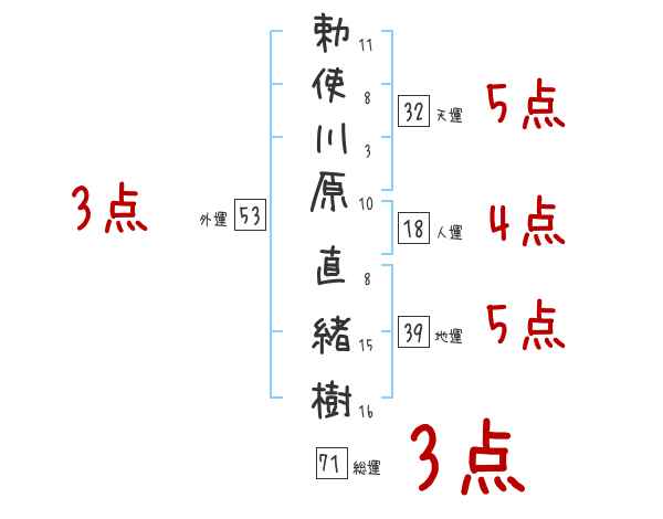 勅使川原直緒樹さんの画数の鑑定結果