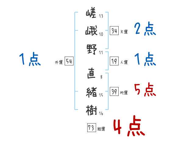 嵯峨野直緒樹さんの画数の鑑定結果