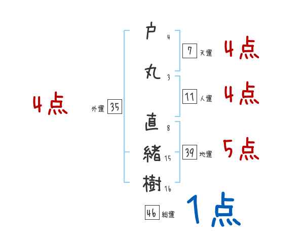 天運![]() | 戸丸直緒樹さんの天運は7画の4つ星!強い意志や信念を持ち独立心が強い。自立する。 家系が持つ宿命的な運勢を表します。祖先から受け継いだ苗字ですので自分の力が及びません。家柄を象徴します。 |