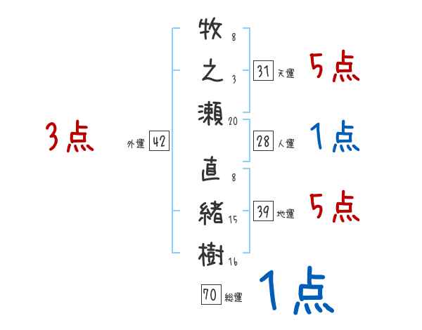 牧之瀬直緒樹さんの画数の鑑定結果