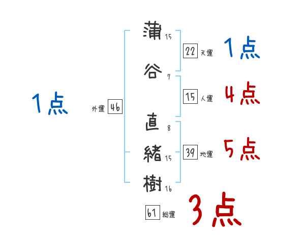 総運![]() | 蒲谷直緒樹さんの総運は61画の3つ星!強情な性格でうぬぼれタイプ。自ら破滅する。 あなたの人生を表す1番重要な運勢です。生涯を通じて影響する総合運となり、主に50歳以降の晩年期に影響を及ぼします。 |