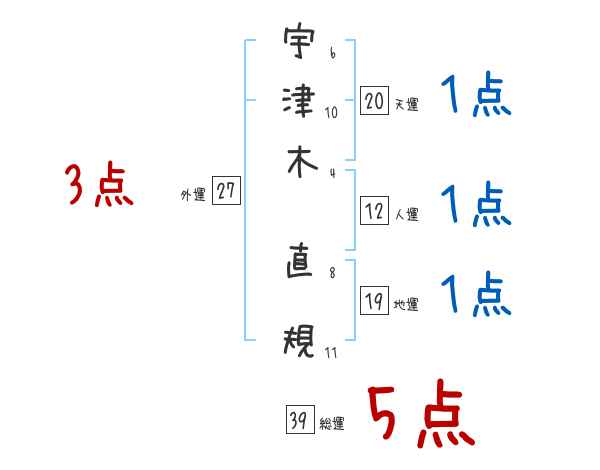 宇津木直規さんの画数の鑑定結果