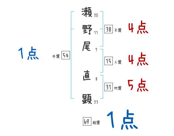 瀬野尾直顕さんの画数の鑑定結果