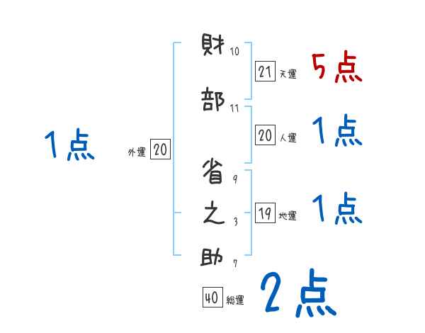 外運![]() | 財部省之助さんの外運は20画の1つ星!社交が苦手。人とは違った才能があり波乱万丈な人生かも。 生活面を象徴する運勢です。外部から受ける影響力を表し、結婚運、家庭運や職場、環境への順応性を表します。 |