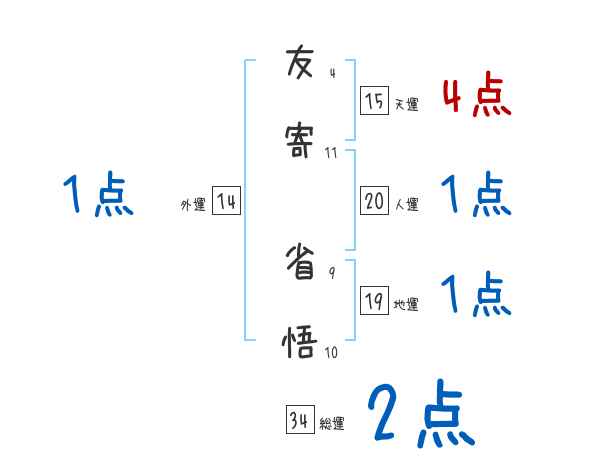 友寄省悟さんの画数の鑑定結果
