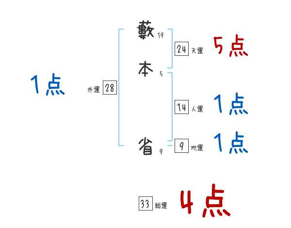 藪本省さんの画数の鑑定結果