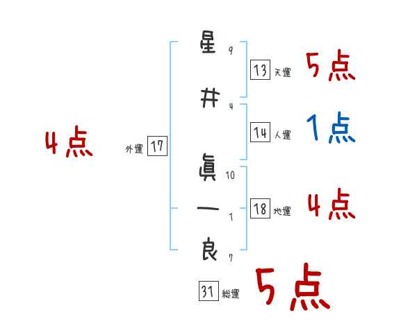 外運![]() | 星井眞一良さんの外運は17画の4つ星!積極的な行動力。地位を気づき財産を手に入れる。純粋な心と直感力。 生活面を象徴する運勢です。外部から受ける影響力を表し、結婚運、家庭運や職場、環境への順応性を表します。 |