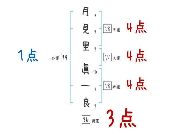 月見里眞一良さんの画数の鑑定結果
