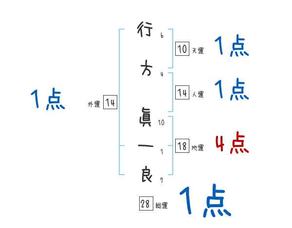 行方眞一良さんの画数の鑑定結果