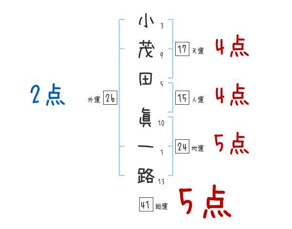 外運![]() | 小茂田眞一路さんの外運は26画の2つ星!波瀾万丈かも。信頼できる人を大事にしましょう。 生活面を象徴する運勢です。外部から受ける影響力を表し、結婚運、家庭運や職場、環境への順応性を表します。 |