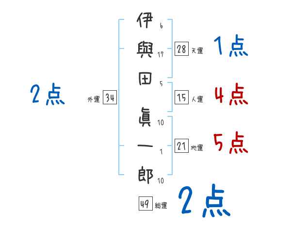 伊與田眞一郎さんの画数の鑑定結果